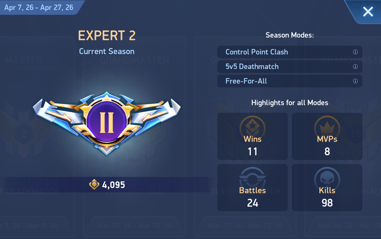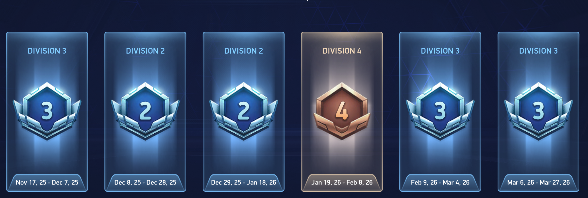 Please let me explain, here are Your seasonal legues history: