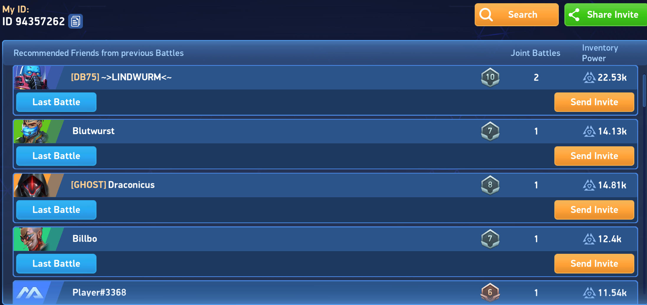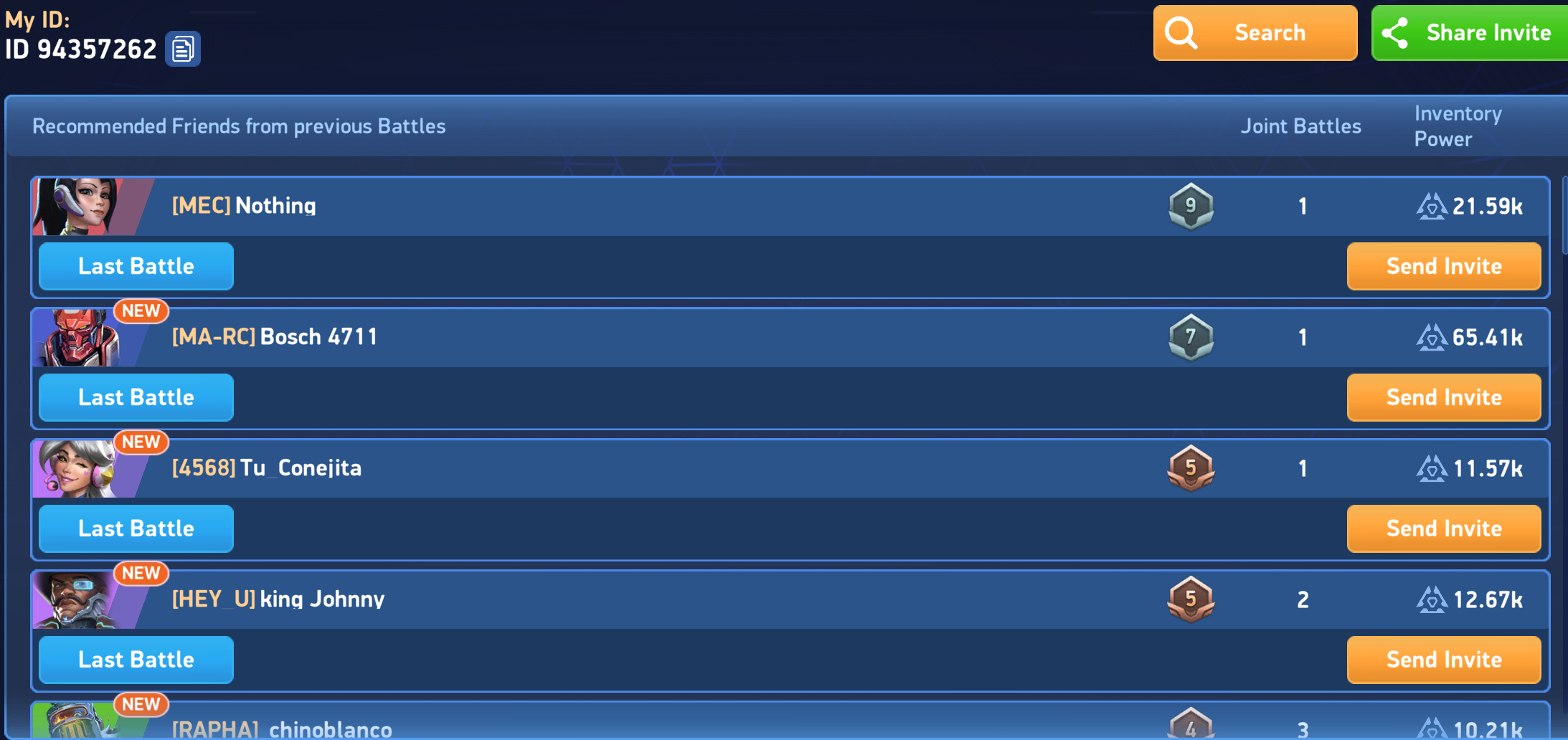 ... not sure what to say .. my enemies were 5-6 stars mechs with nearly maxed out legendary implants, while I only have 6 stars paragon and lancer, even not in the hangar, and i have zero legendary mechs in my inventory, while my enemies had plenty. Would be nice to know what exactly matchmaking is taking into account, because this left me in shock.. I will put my strongest hangar for the next tournament, but even that is nowhere close to what I seen with my enemy.. whatever :D