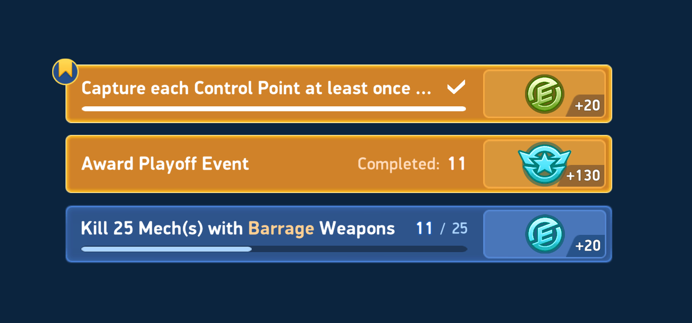 Capturing points without taking damage or kill certain amount of mechs without taking damage are stupid too..