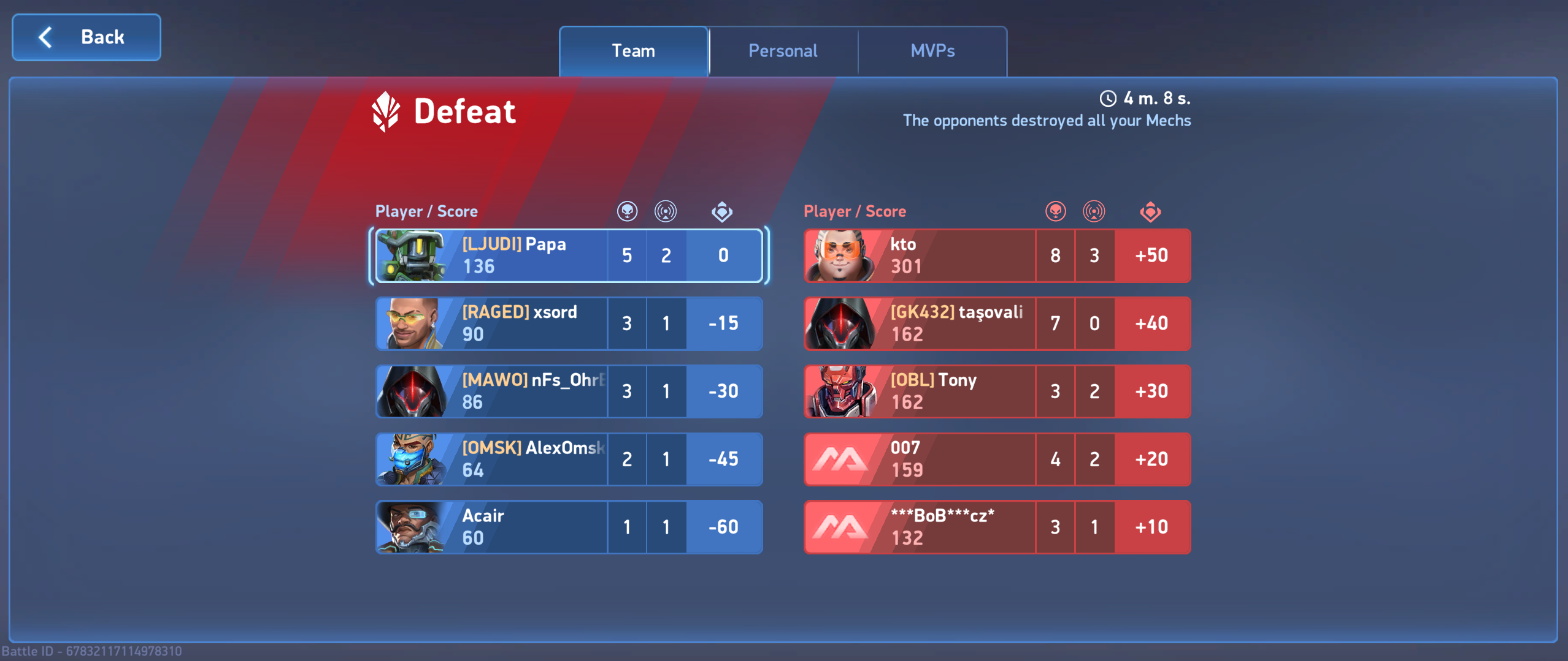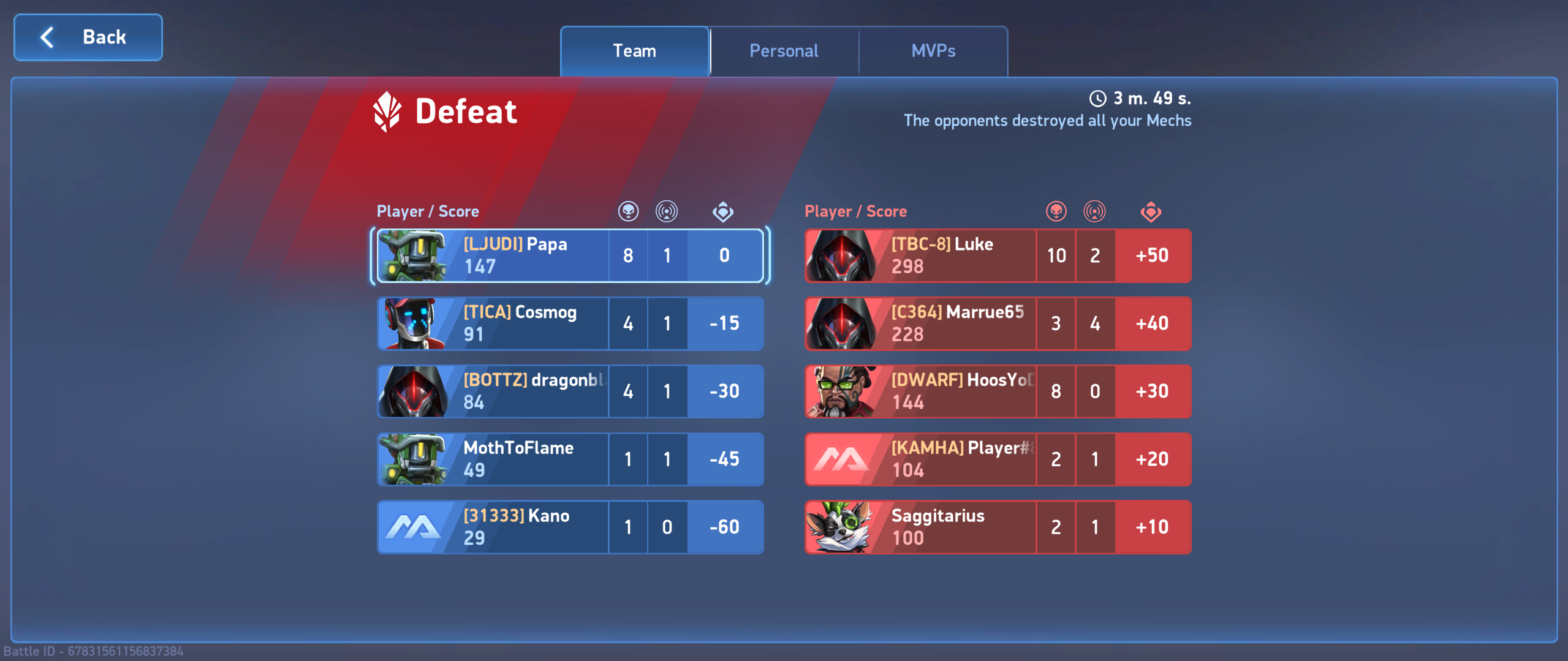 And this game is my highlight of the day.. Me Flying to the center to capture middle point, trying to defend it the whole game, use all my mechs for it and happily die at 86% of blue team score.. Thinking thats that sorted.. We will win.. then watching how my teammates rush to recapture middle point and die (when only few mechs are left in our team) instead of waiting and defending their home point... And losing at 99% with message "All your team mechs were destroyed", just over the moon!