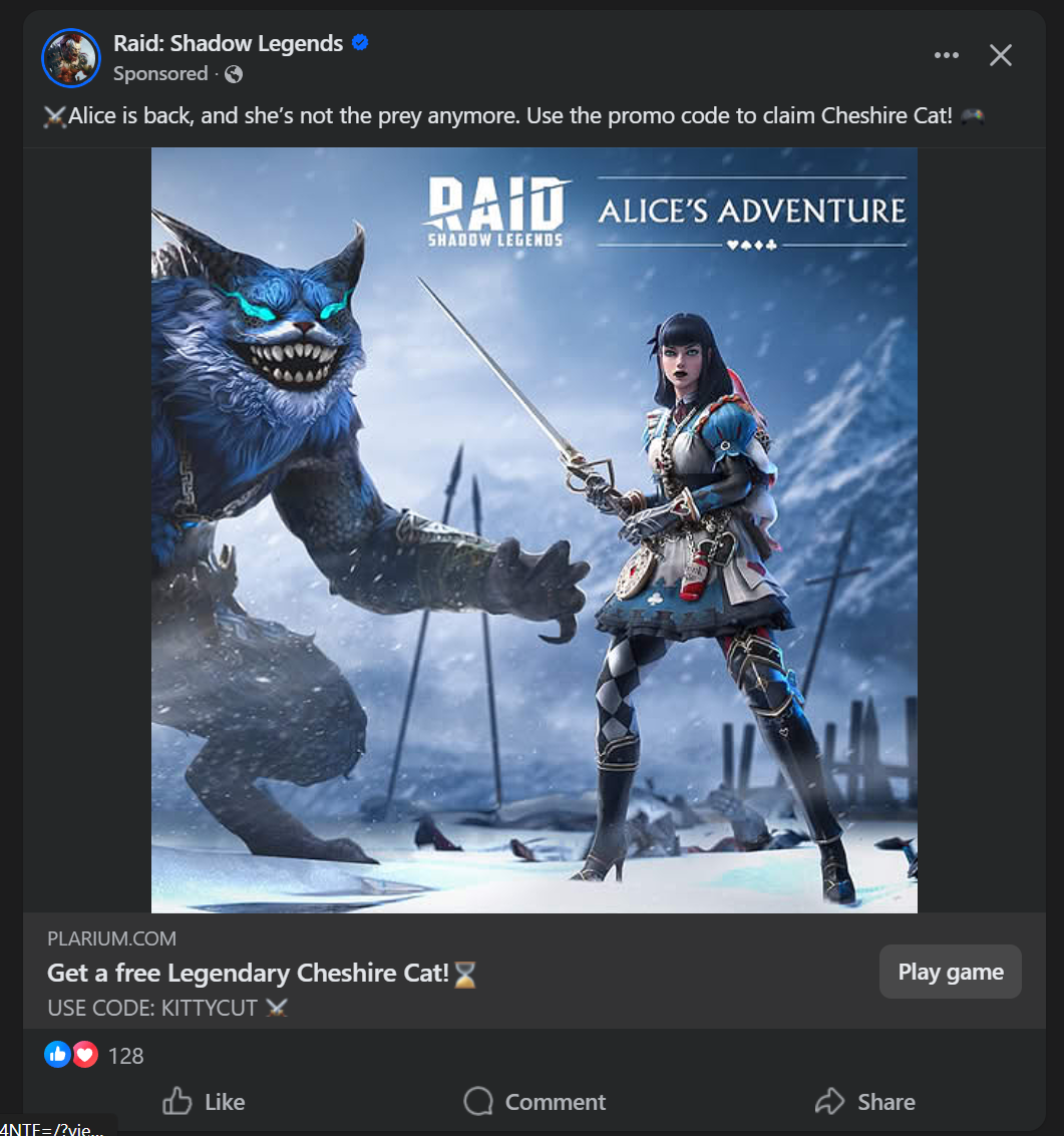 Facebook seems to indicate KITTYCUT provides Chesire Cat. Guessing for new players only.
