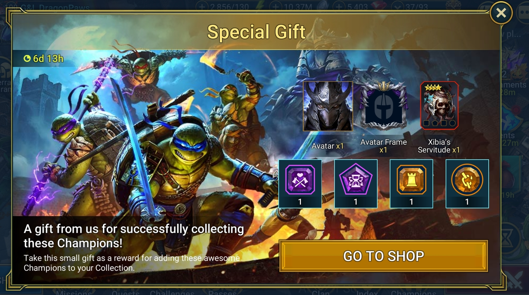 While I agree that not having Splinter was a miss, I doubt very much that Plarium would repeat a collab like this...unless yuo mean 2-3 years down the road, and then still only "maybe".  With the number of players that have all 4 turtles (or close to it), there just wouldn't be enough engagement to justify the expense.