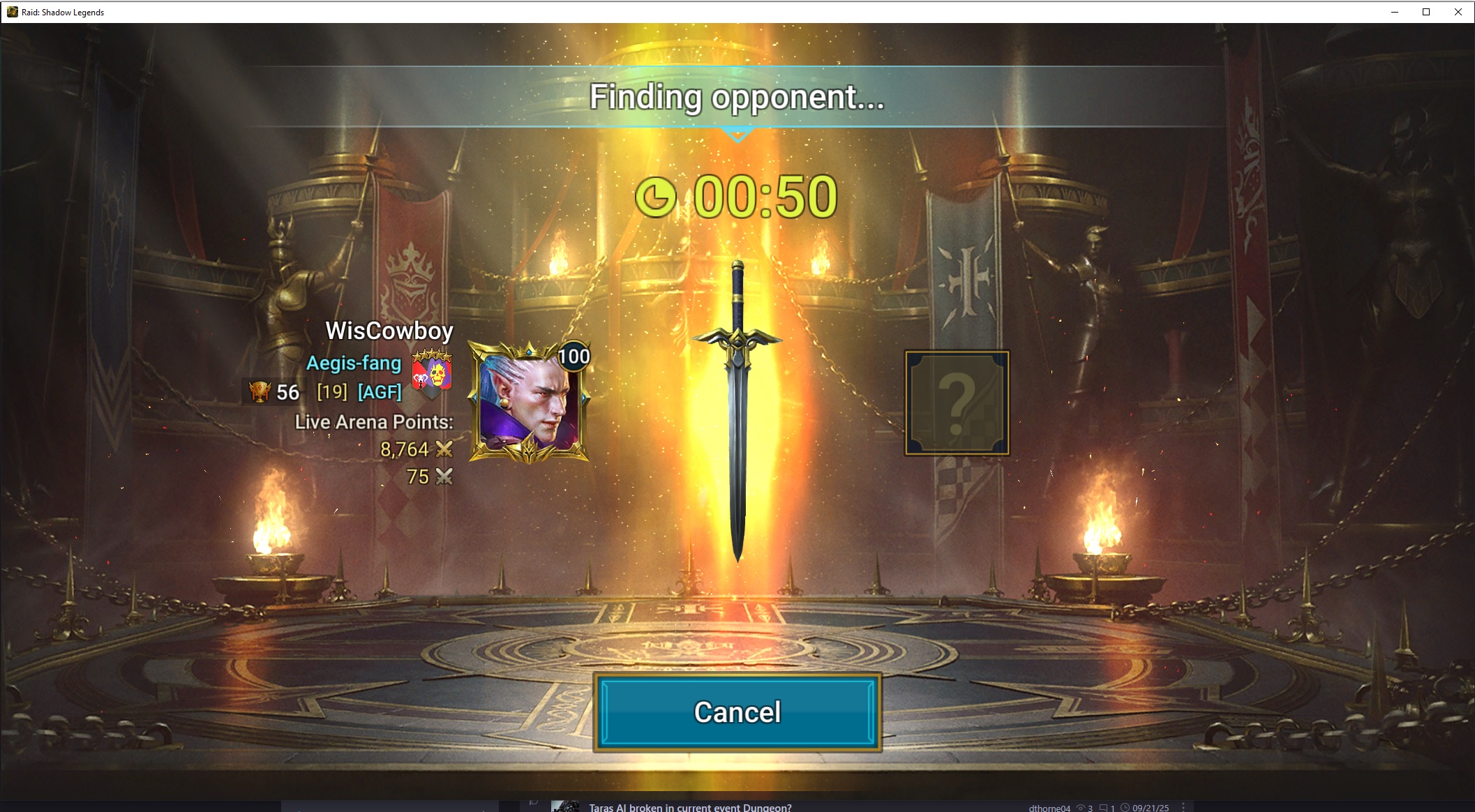 Well, the timer gets to 60 seconds and the window pops up that says, "unable to find an opponite" and either (cancel) of (find). So I click the find and it takes me back to the LA home screen and I get a pinwheel saying "processing results".