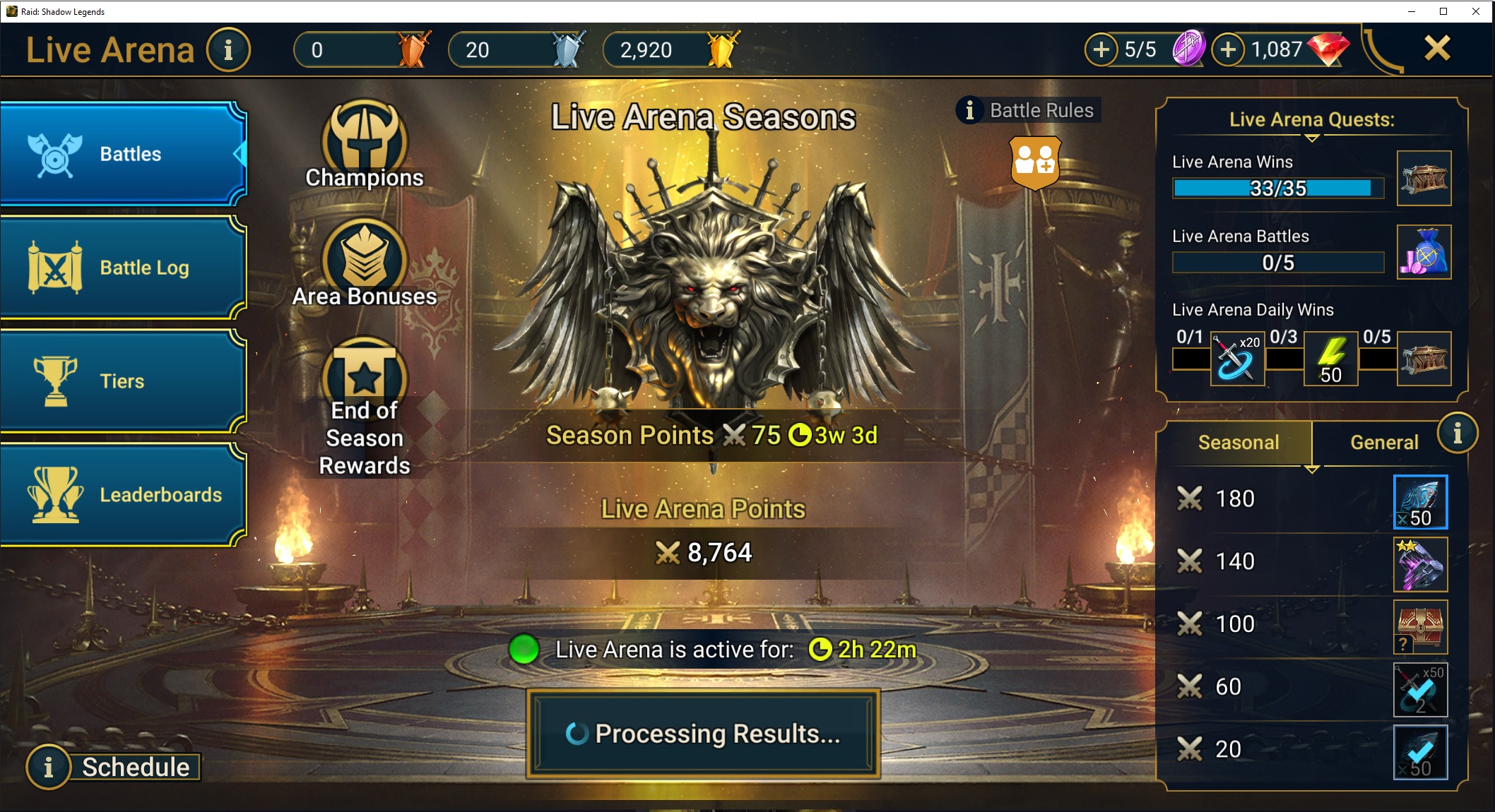 So, when I restart my PC and log back into Raid. I go to ther LA home screen and what do I see? You guessed it. Processing Results still.