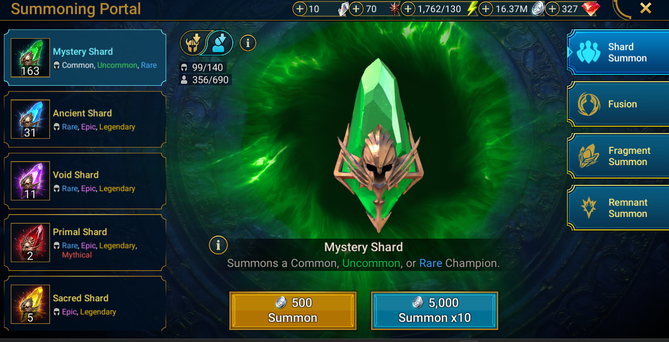 For many players, it does require a shift in play-style:  Shards, Soulstones & Gems are resources that must be saved and managed in order to facilitate the compeltion of Fusions, Titan Events & Path Events.