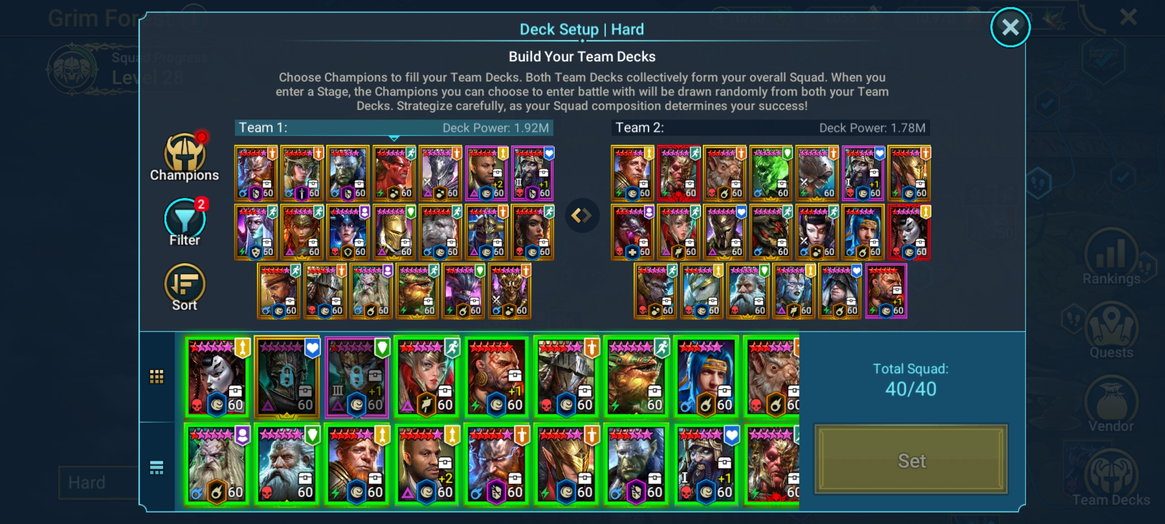 I love the concept and gameplay of grim forest, but its way too easy to complete for end-game players. I'm an early end-game player -- haven't completely cleared soul-cross, only half way through FW hard, and no empowered legendaries. But this content was so incredlbly easy, I full-auto'd through everything, and every boss. I have no idea of what the actual mechanics were of the new bosses because my team just annihilated them without me doing anything. The purple section was harder, but I still beat it on auto without any redraws (just had to do auto-target a couple stages). It's really disappointing that there is no challenge here at all. Just a required time-sink we have to do every day like doom tower hard because the rewards justify it. And there is so much potential here which makes it even more frustrating. I'm sure its a blast for mid-game and late game players, but I'm stuck waiting until next Christmas for hopefully some more challenging content.