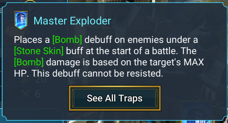 However, my clanmate that fought the team that had it said that in addition to the bombs at the beginning of the battle, Lydia put bombs on a Kalvalax (No Stoneskin) on a regular attack, and when his Leonardo put on Stoneskin from his passive, he got bombs. Is there a bug with this trap?
