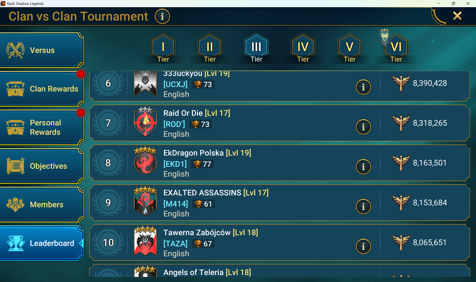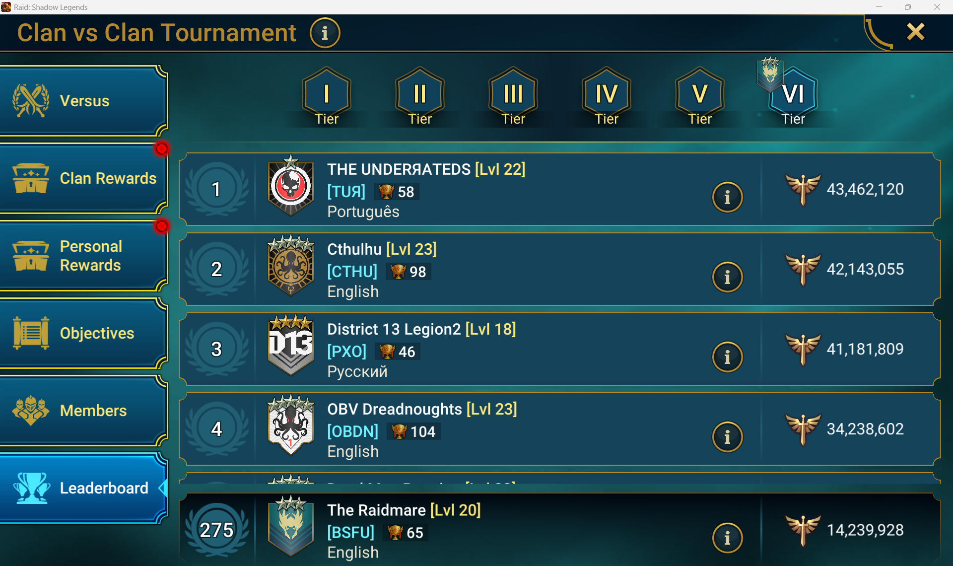 But we WON and placed 7th in the World for clan output !!!! Thats big game for us = just saying