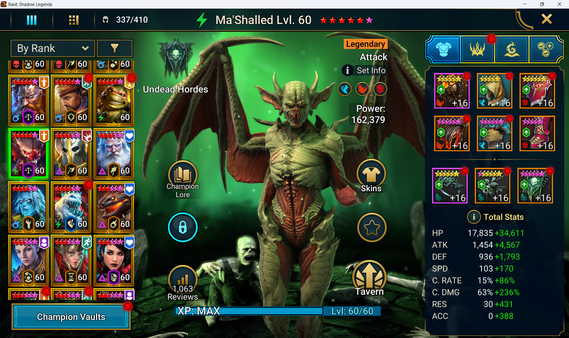 Mashalled is a decent candidate for just about any gear. 9pc protection or feral works for him, merciless is imo the best overall set in the game. He's also good choice for cursed or provoke, letting you clear a spot in your team for someone else.