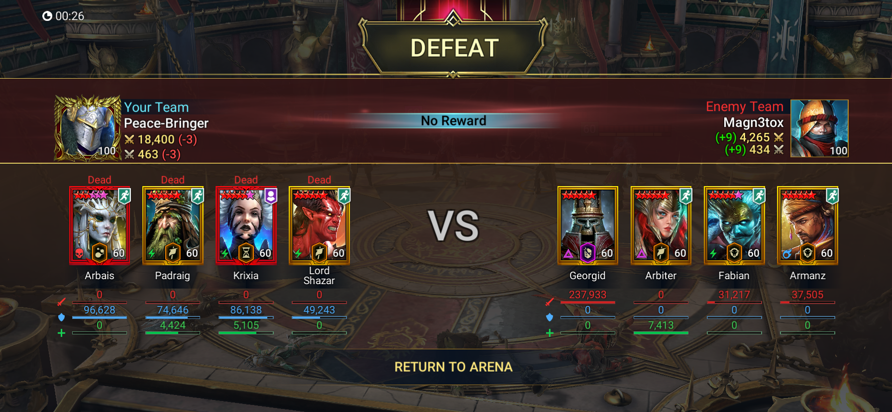 Plarium has actually proven themselves totally incapable of fixing any Arena Mode, and all 3 are susceptible to extreme Farming by Late/End Gamers and 2 of the 3 cause extreme frustration for Early/Mid Gamers.