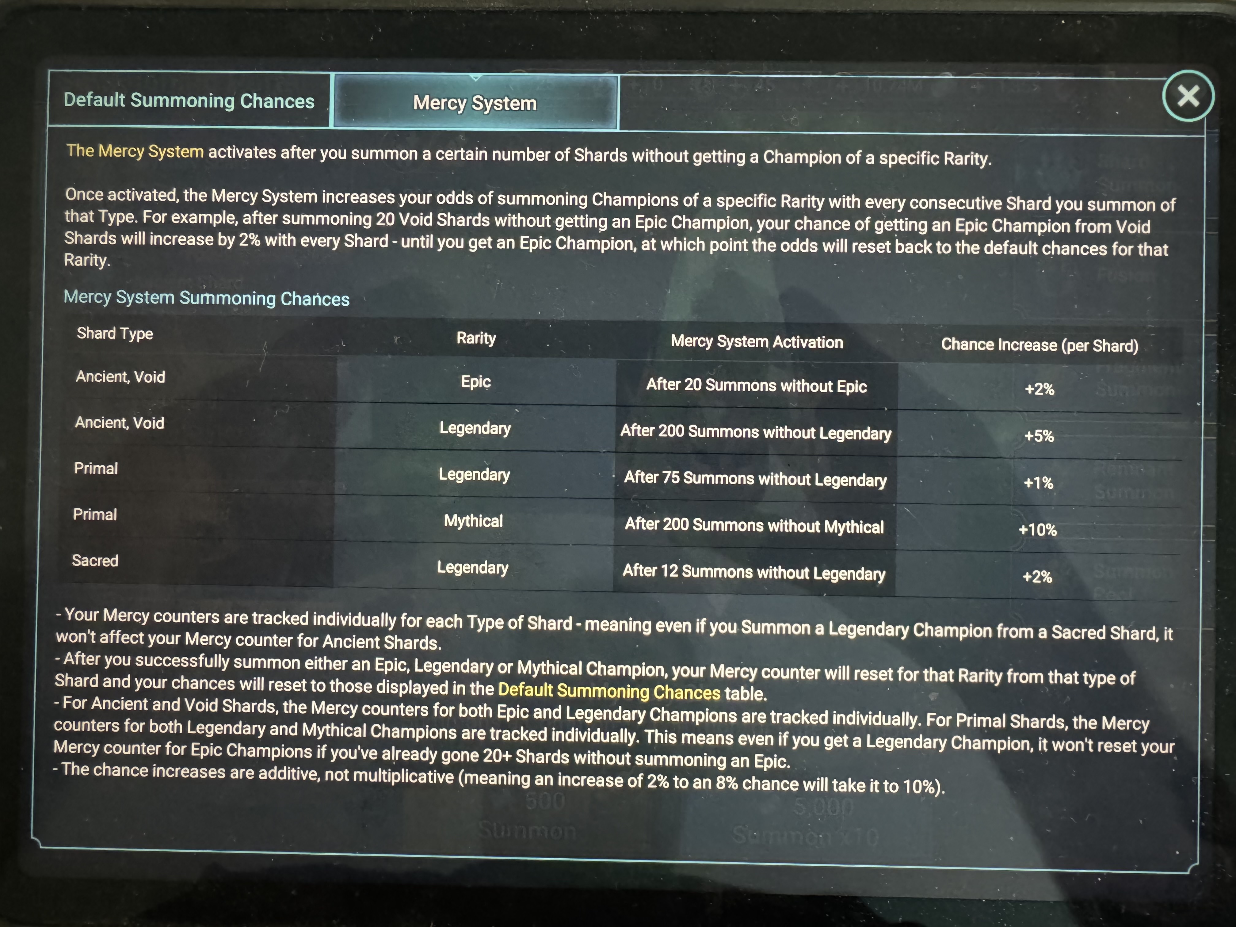 Edit: Also that mercy system came in around 2021 iirc? So anything before that won't count. Also as soon as you have a successful summon. It resets.
