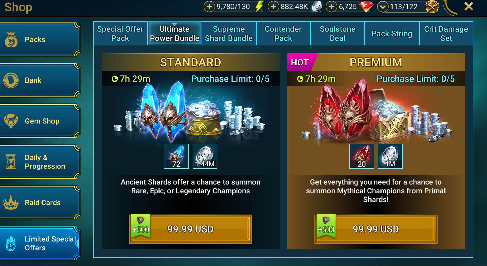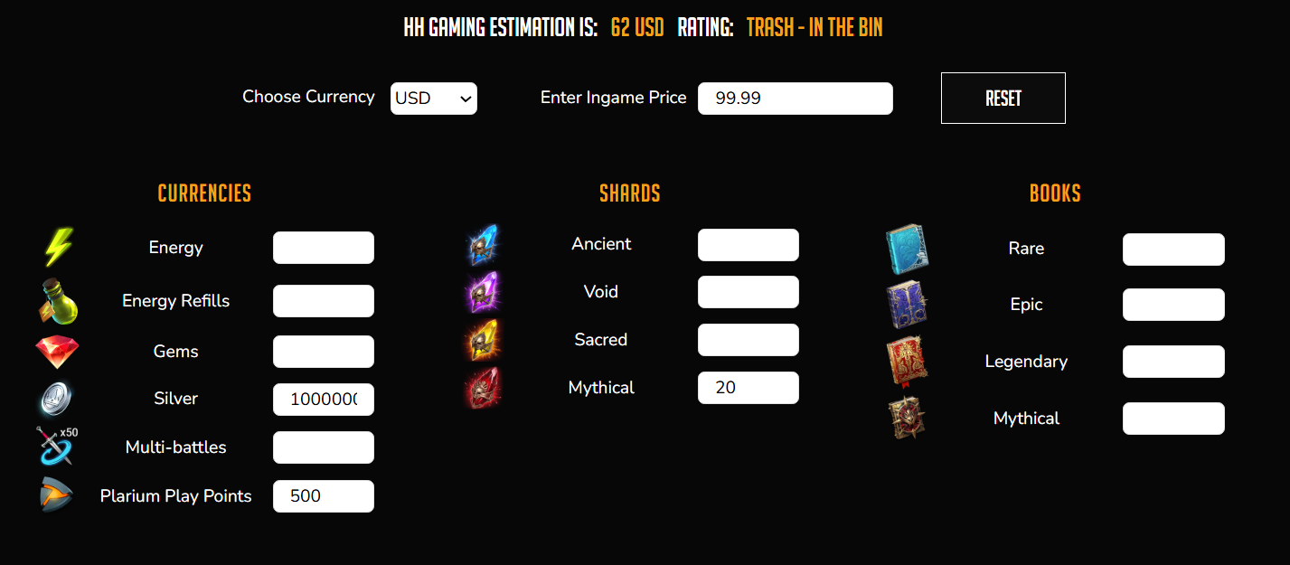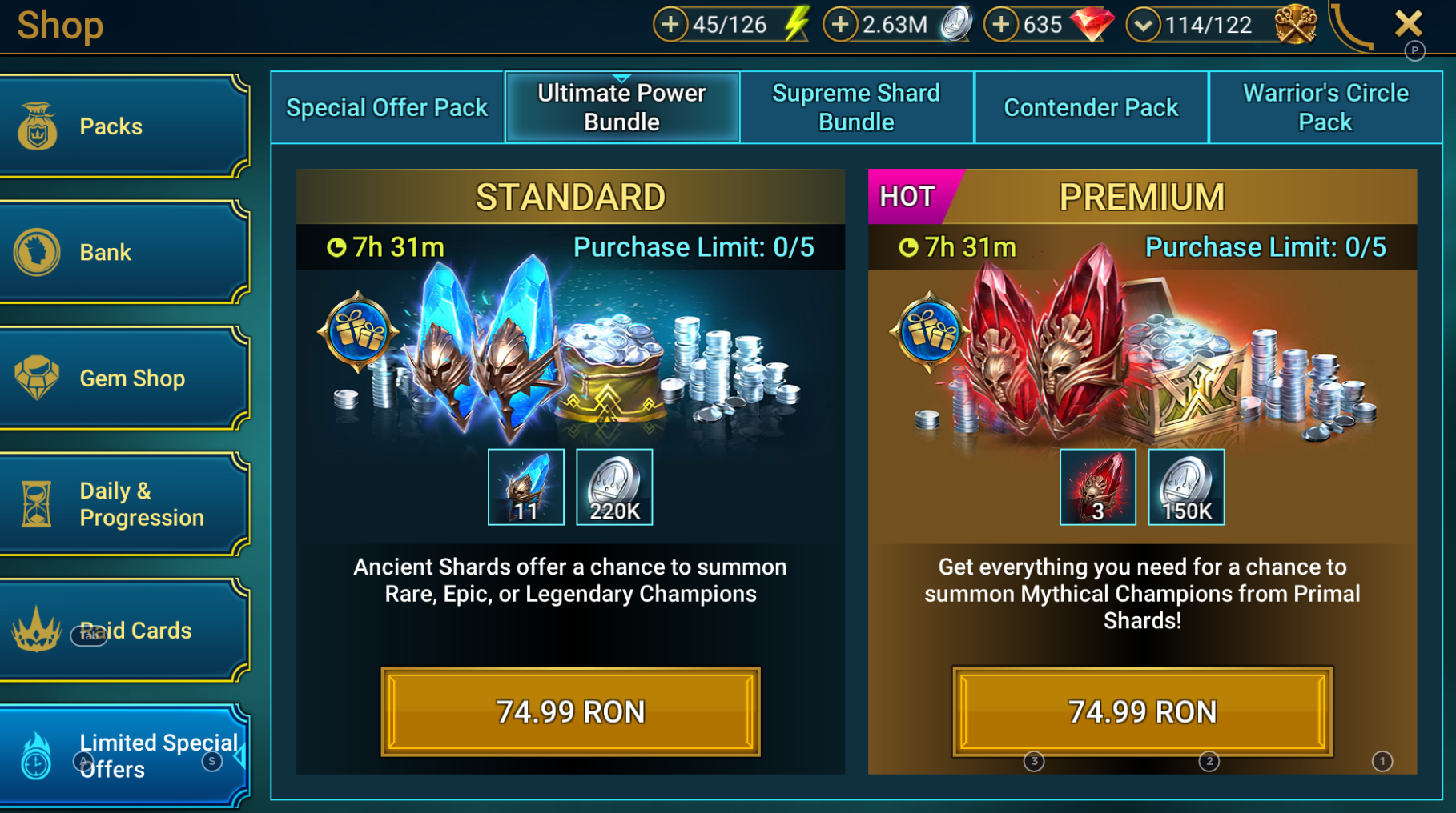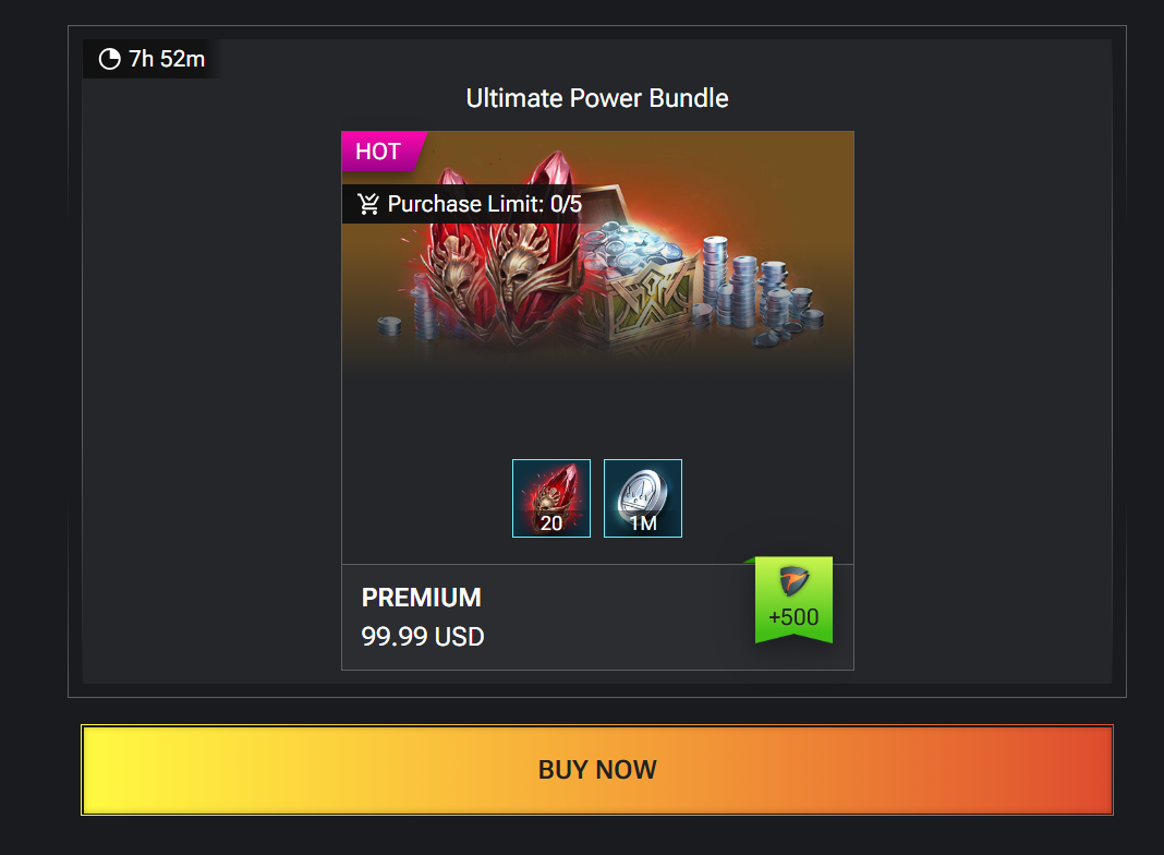 2. Legendary, epic or, at least, normal offerts (like other players, e.g. those mentioned in HH gaming Raid Shadow Legends Pack Offer Calculator - HellHades )?