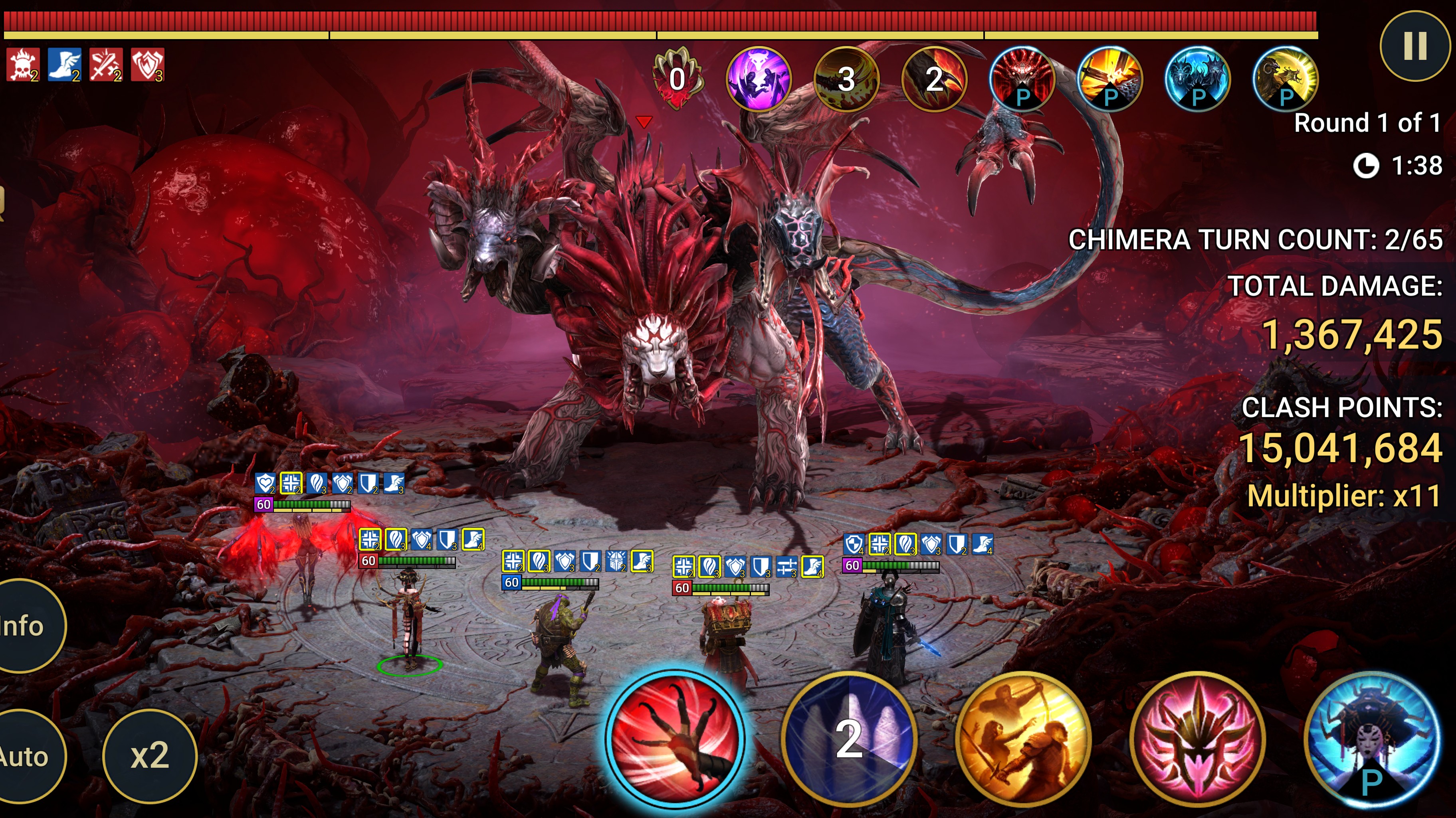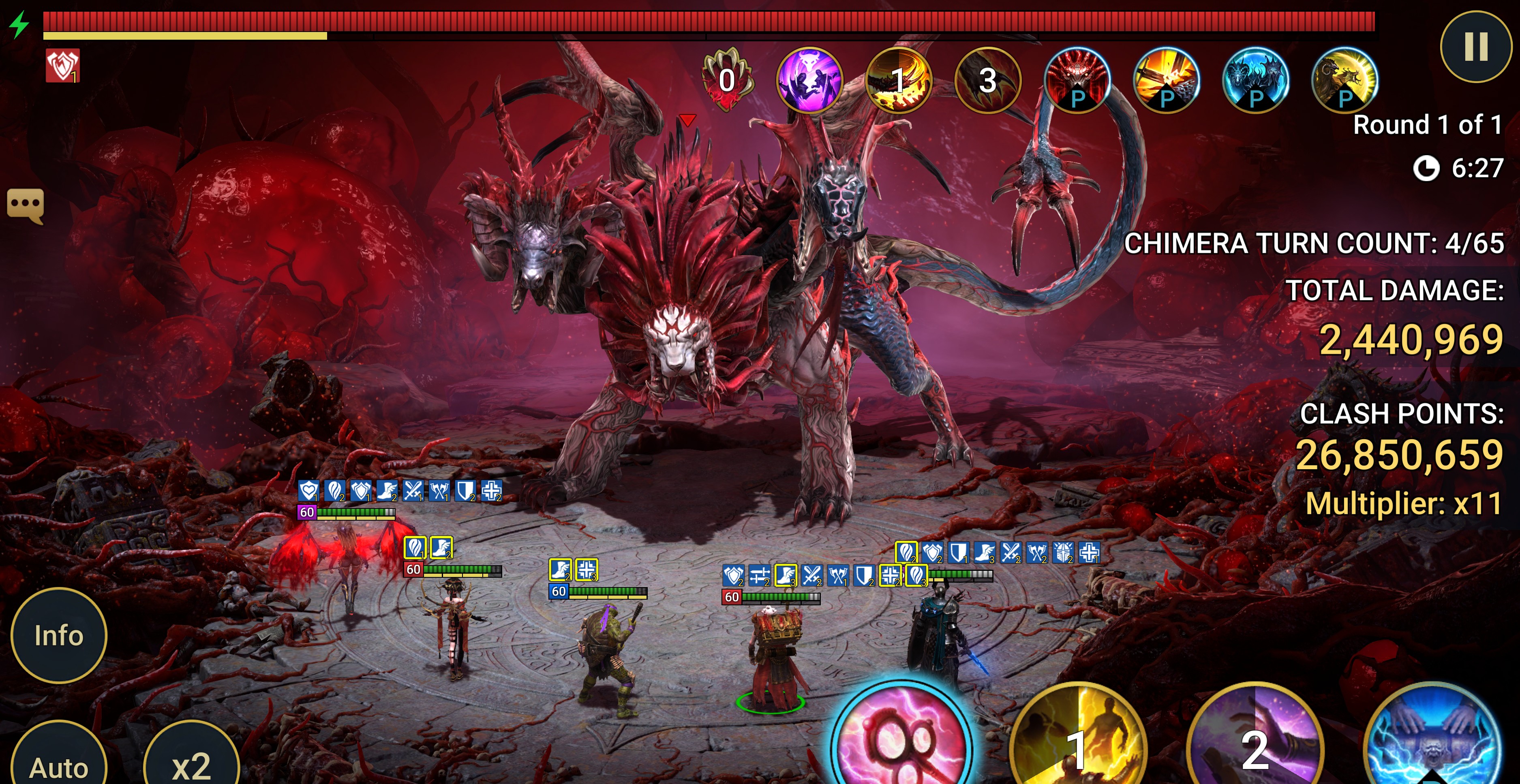 You can clearly see in the 3rd image that my Titus has both sheid buffs on Chimera turn count 2. When Chimera takes his 4th turn and tried to strip my buffs, it says that Titus resisted the strip, but one of the shield buffs is gone. Most of the time is buff is stripped after Chimera 1st buff strip. It is as if the Chimera's accuracy has dramtically increased to where we need much more than 505 resitance for this stage. Point in case, my Lidia has 622 resistance and her shield buffs were also stripped (see last image)