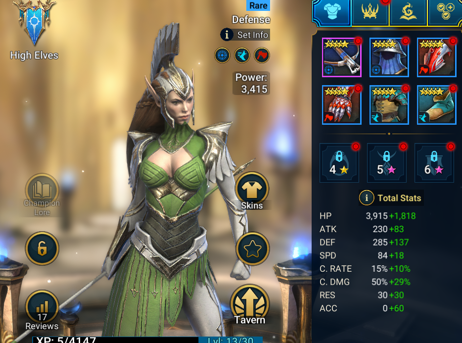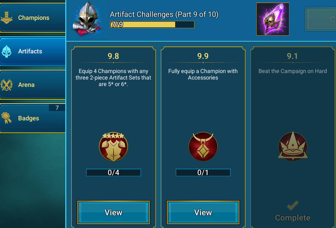 As i'm understanding the challange: 4 different champs need to be equipped with 3 different 2 piece sets. (as in speed, accuracy, crit dam for example) Each piece needs to be 5 or 6 stars. Correct? There is no req for stats or lvl on the gear.