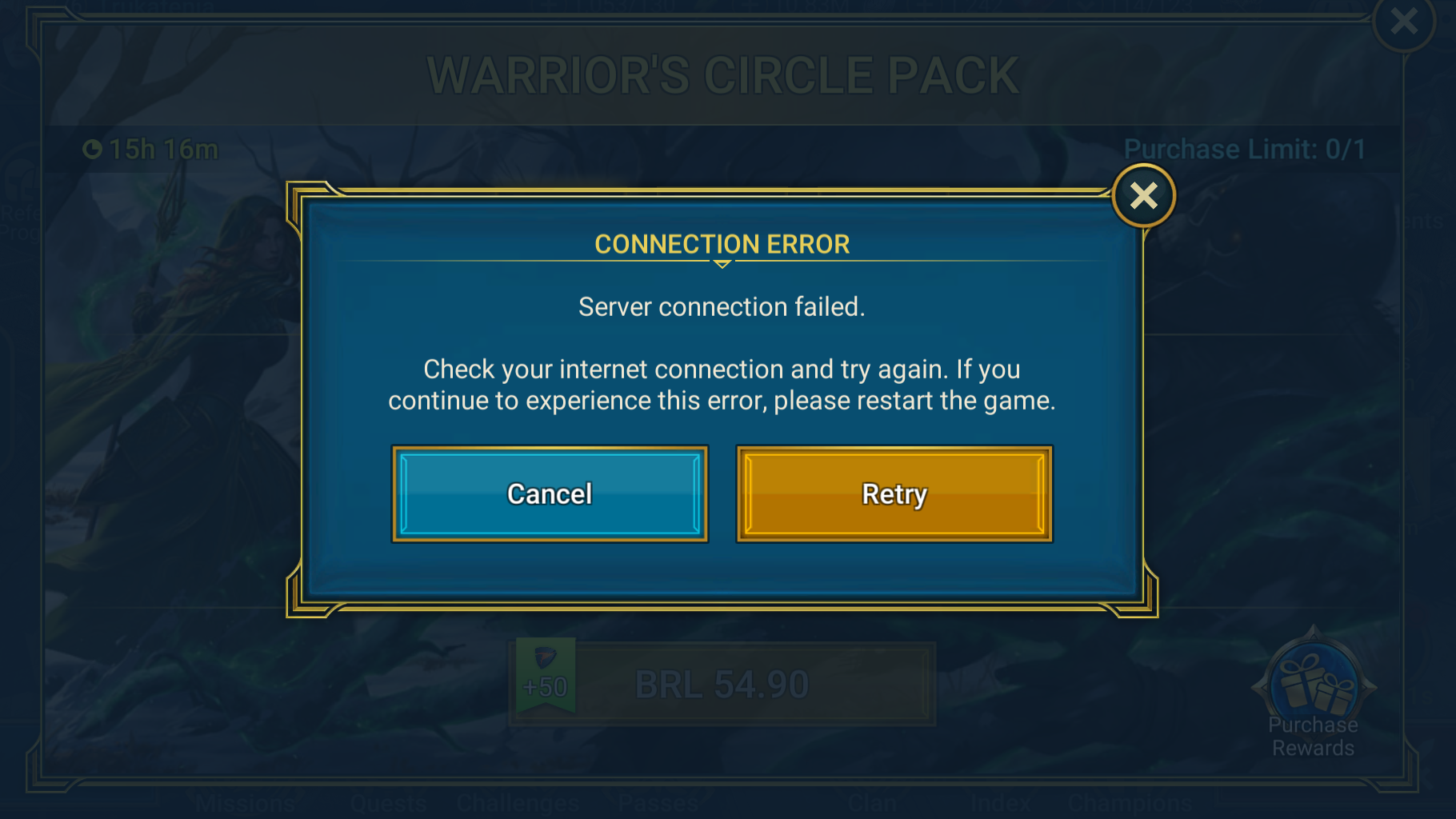 Raid Shadow Legends Error when trying to access Tournaments