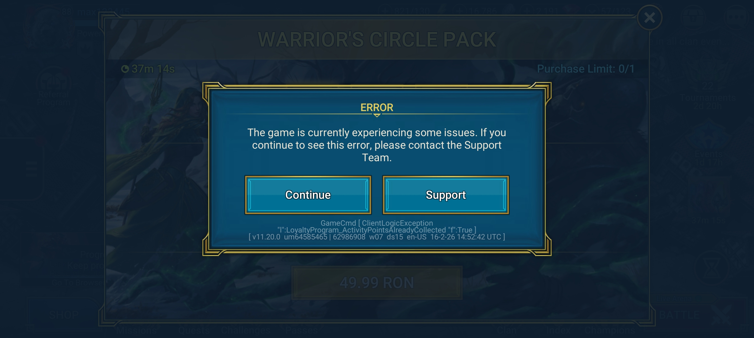 Showed up at log in today but when you click on the first reward it errors and ask to contack support or relog in. I have done both but still can not get around this error to play the game, it is stuck on this screen even after logging in and out repeatedly. I already have EZIO so am a bit confused as to why I am seeing this reward a second time...