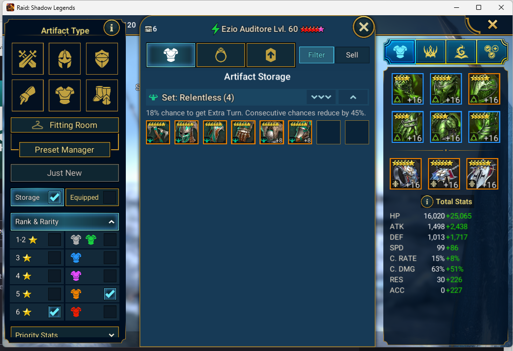 so i checked in my artifacts storage and the only items there were this 6 star legendary set which i think i already owned because the chest and the boots are both lvl 8.