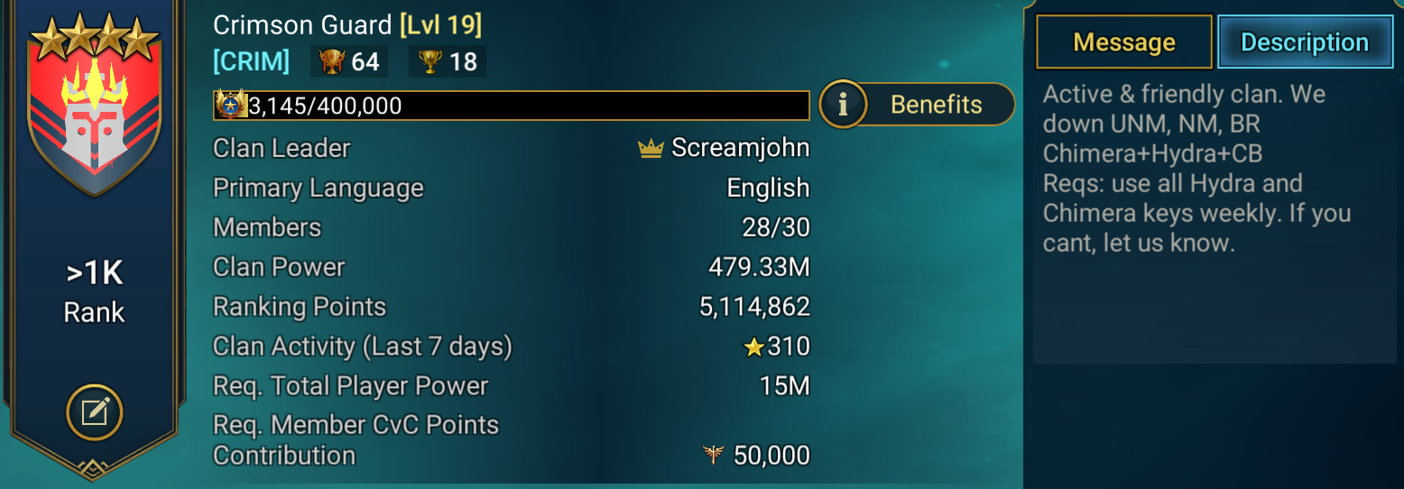 Crimson Guard [lvl 19] - late game clan
