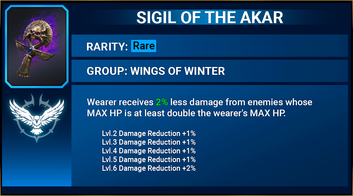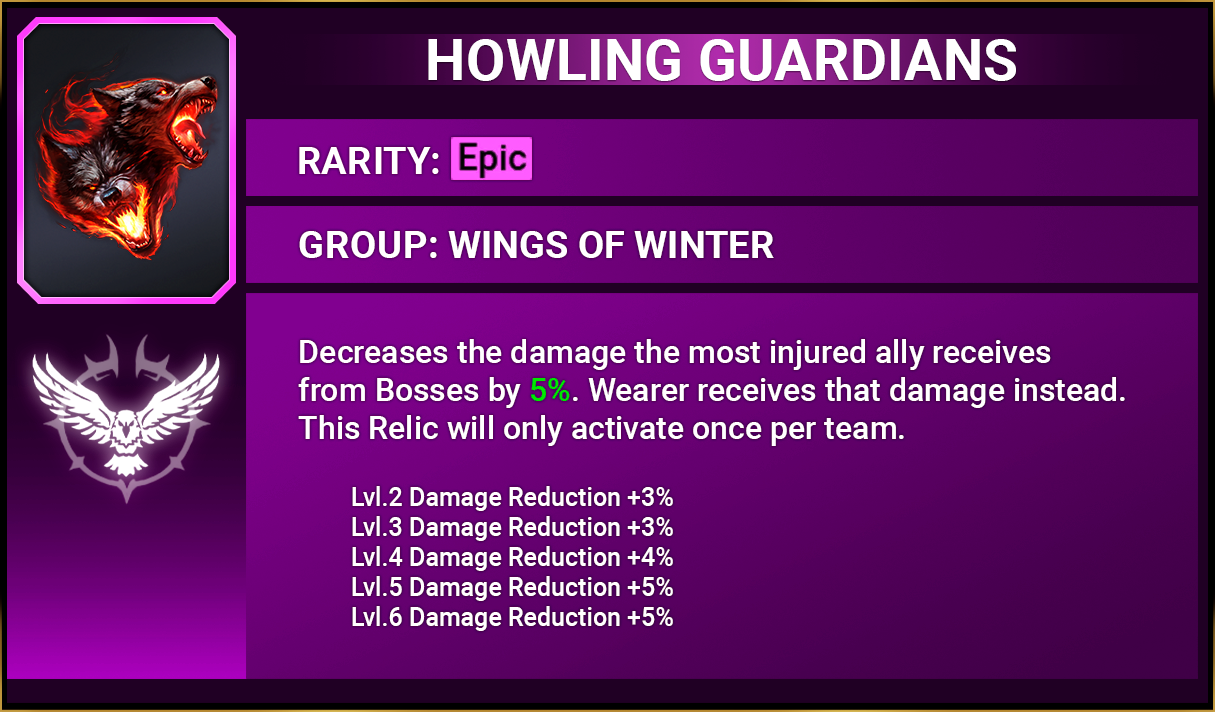Thanks for the followup. I threw a +9 Diadem of Undeath on Visix for Hydra, so that should be giving her +3% Defense for every active Ally Protect, which would be a 15% boost to both Defense and straight into Damage for about 70% of the fight....and her damage actually went down comapred to previous runs, which makes me question whether this Relic is doing anything at all.