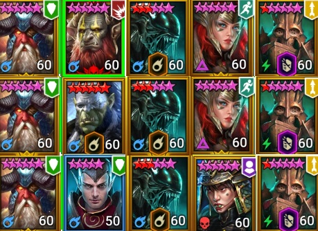 Просто быстро ходим, стараемся набить по больше урона. Всем героям талант ВДМ, сеты кражи жизни и по больше скорости. Любых героев можно менять, подобрав оптимальный вариант по урону.