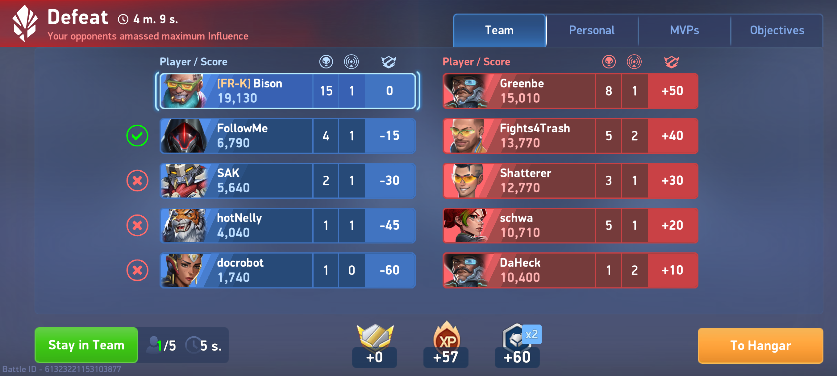 Getting match against 10+ k hanger with legendary mech and my teammate is always some imbecile