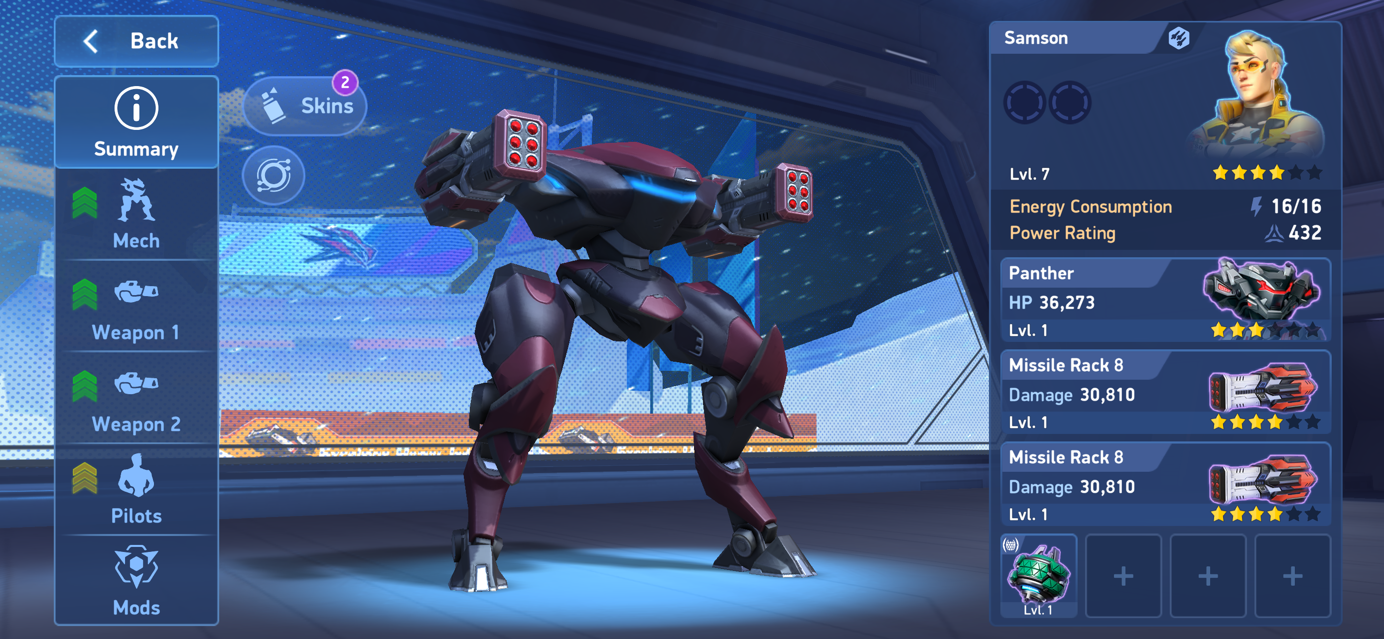 I also ask please add options to get mod parts beyond weekly tasks and hangar showdown. Rework it so it's a tournament game mode and update tournament rewards. I get 400 basic mod parts and 50 elite mod parts per 5 days with weekly tasks. I can get up to 2000 basic mod parts and 500 elite mod parts per 5 days playing hangar showdown. I get why you've limited the game mode but the a-coins cost beyond 5 battles and it functions a lot like tournament but for getting other rewards like pilot marks, implant parts and mod parts. But then why not just make that part of tournament rewards instead of another separate thing that we have to play more battles for? And then remove the cost, the battle limit and rewards for the regular game mode screen so we can use it as a practice mode or play it for fun.