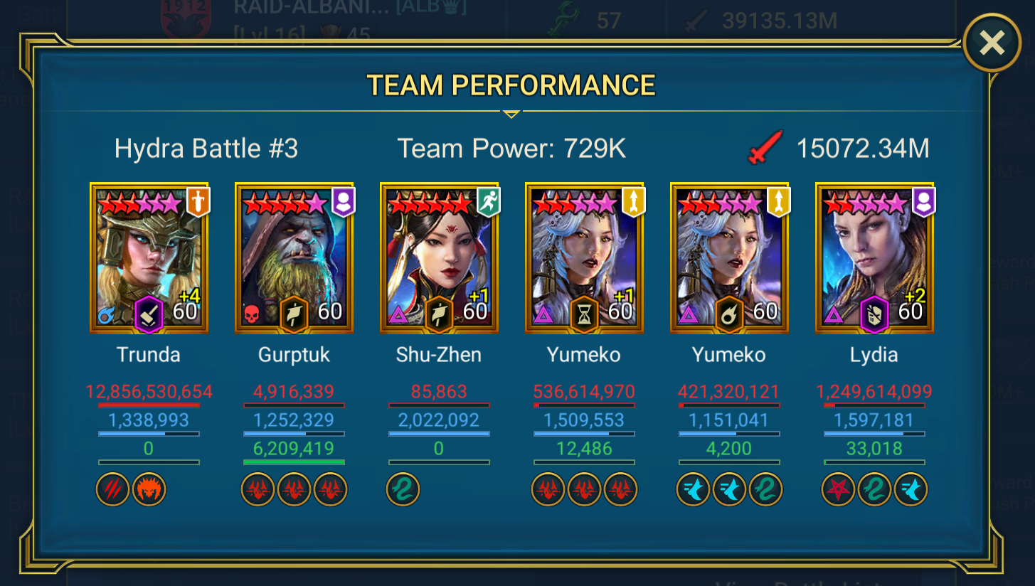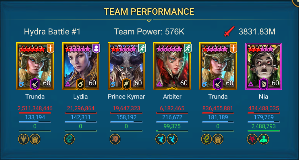 So, I get that Plarium says that a key like this is operating within the expected parameters. Even though I have a clan member who does damage like dthorne04 with Trunda, I think that Trunda is totally unabalanced for Hydra even at that level. Nothing else compares to her. That is the level when things SHOULD get re-balanced.