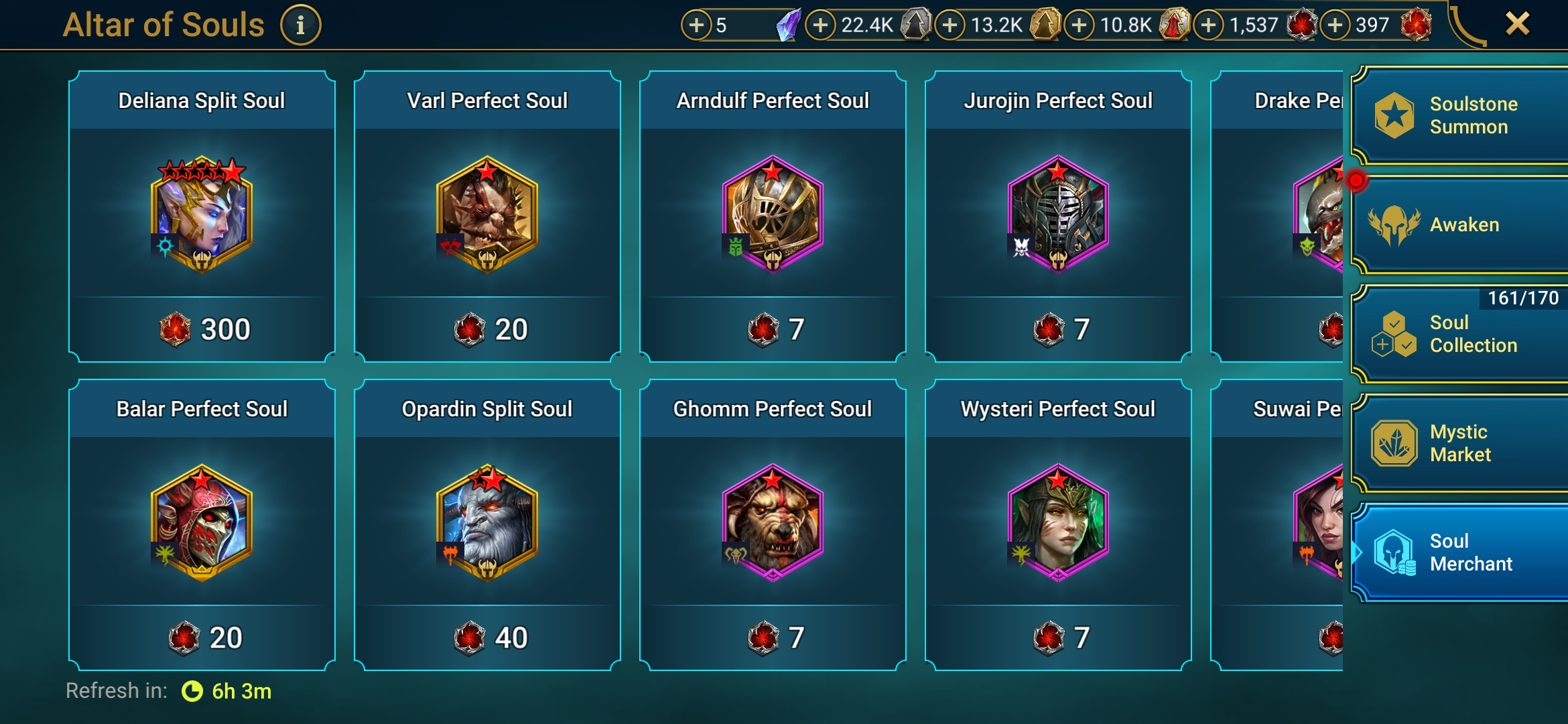 I frequently go weeks & weeks w/o there being a split that I am willing to convert coins for, but for the past 10 days (or so) I am getting highly desirable splits every reset, sometimes multiples. I have picked up a couple of 3 star splits this week, but now I have to sit on everything else to make sure I have the flexibility to do a DoF and/or Path that requires soulstones....