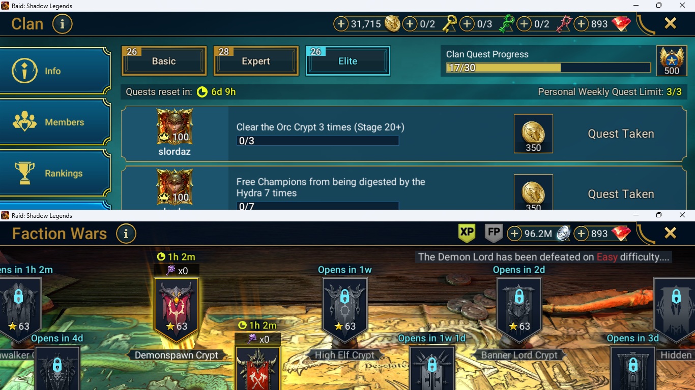 slordaz25 нояб. 2025, 23:0325.11.2526.10.2113taking weekly clan quests problem?took the quest did it and it's not registering, did all 3 morc Faction war on level 25 with a level 20 + requirement i