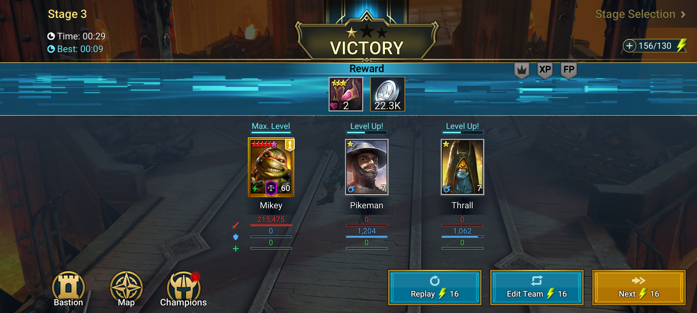 Upgrading 3 2* Champs to Lvl. 20 on Stage 12-3 Brutal used to cost me 5 super raid Multi-Battles á 16 energy. Now I only get to Lvl. 15 with the same amount of energy. To get to Lvl 20 I now need 10 super raid battles!