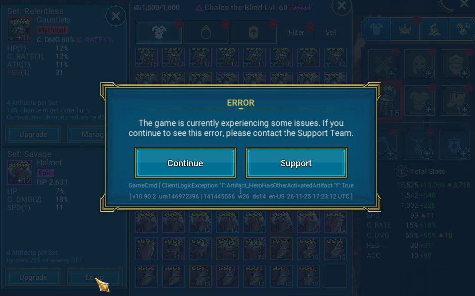 Good afternoon! The hero had a set of sights, and when trying to replace them, all the artifacts except the helmet were replaced. After a certain number of attempts, it was possible to remove it. Now you can put any artifact on the hero except the helmet. There is a mistake when trying to put on any helmet. Moreover, the hero, even completely undressed, cannot be sent anywhere, either to the arena or to any location - a mistake. The helmet that was removed has been removed. The hero is a key character, he goes a lot of places, it's a pity to just send him to the vault.... Moreover, the usual ones cannot be sent to the backup either, since they can only be sent there without things. It's like he's wearing a dirty helmet, but I can't sell it or put on a new one. The request has been sent to TP, but I doubt they will help. Has anyone ever encountered this?