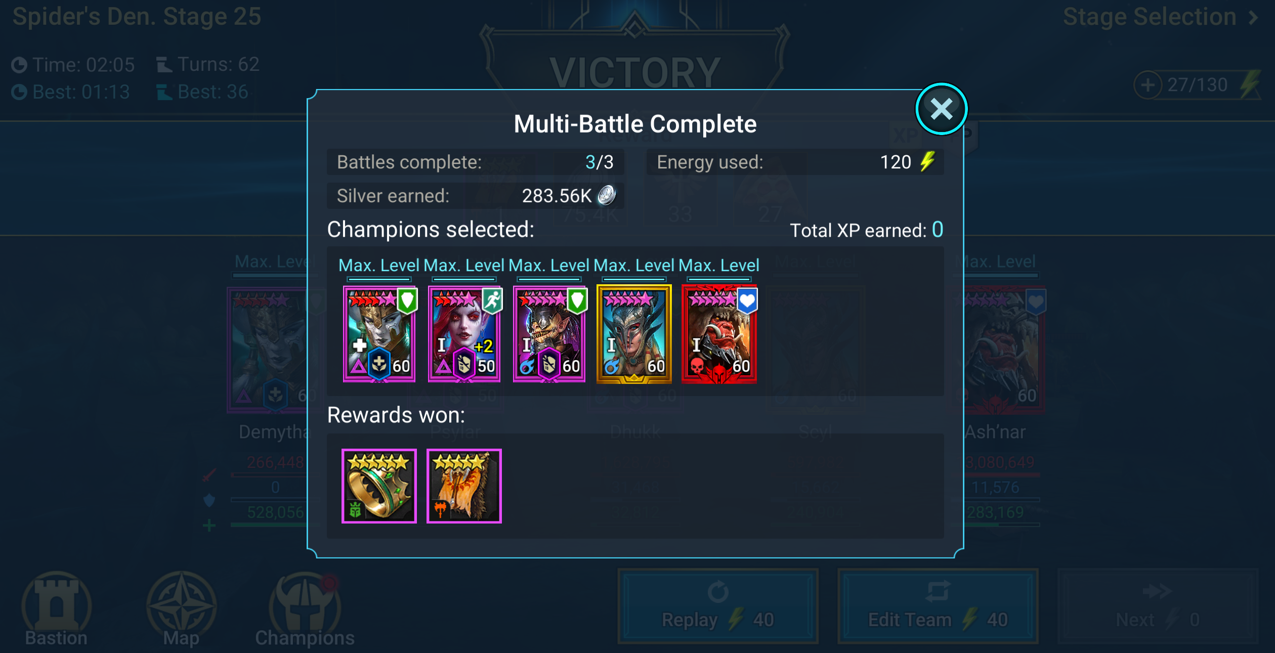 I just did 10 super raids on stage 25 spider's den using auto battle
