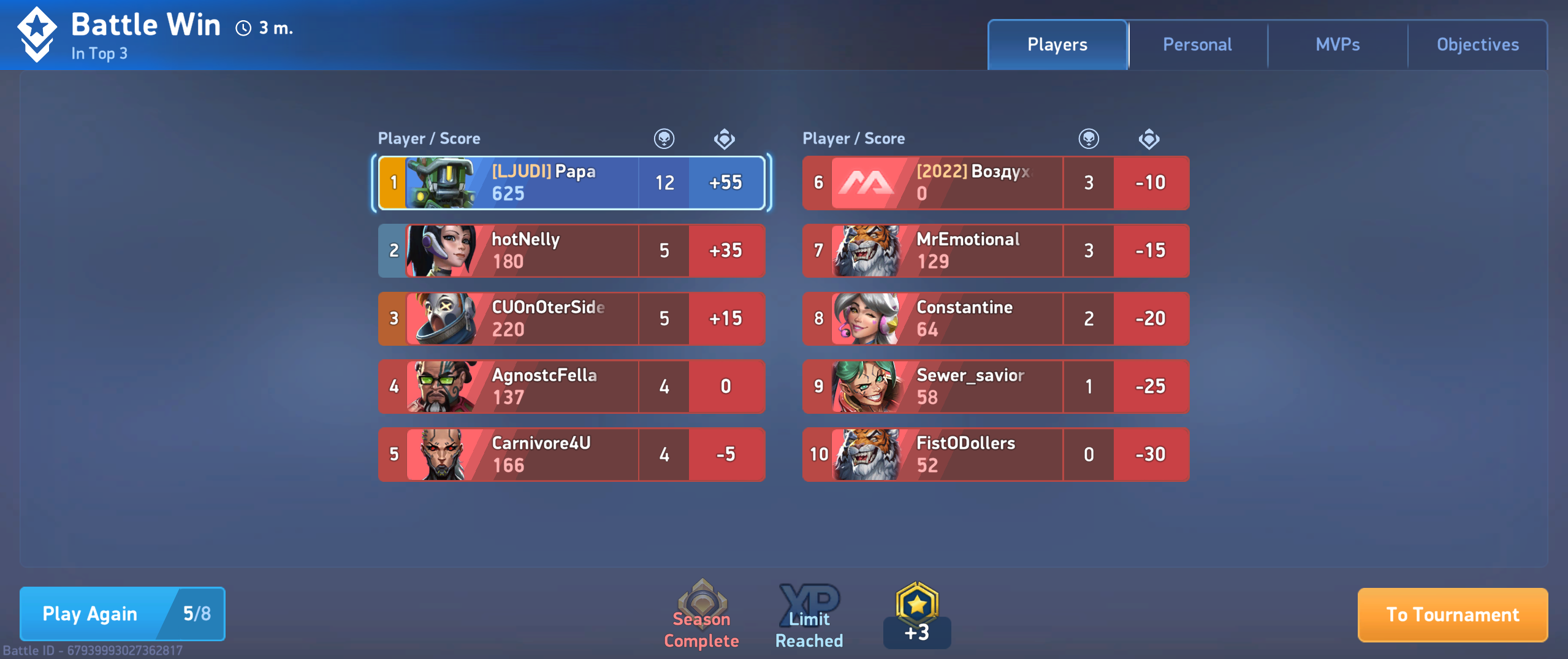 Nothing like someone 50K higher than everyone else in the room. Typical of this game,though. All you have to do is spend piles of cash and the devs look the other way. And the report button obviously doesn't do anything because it STILL happens repeatedly, by the same offenders all of the time.