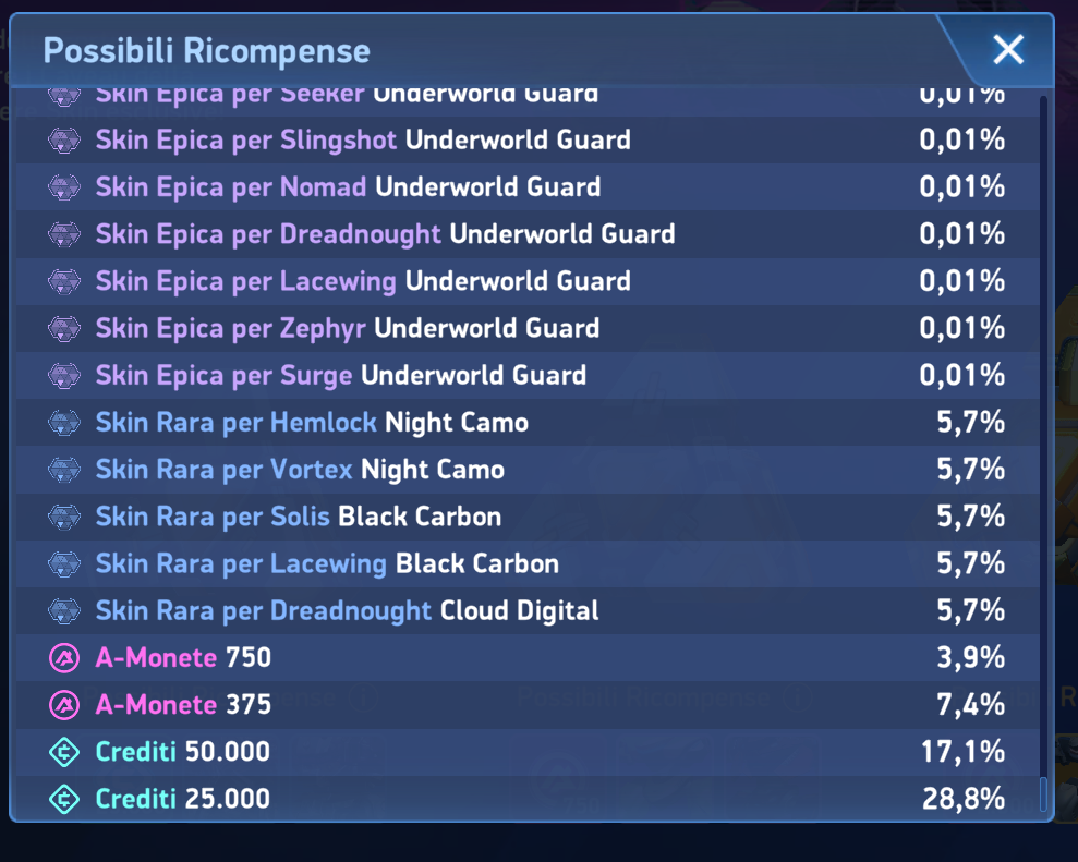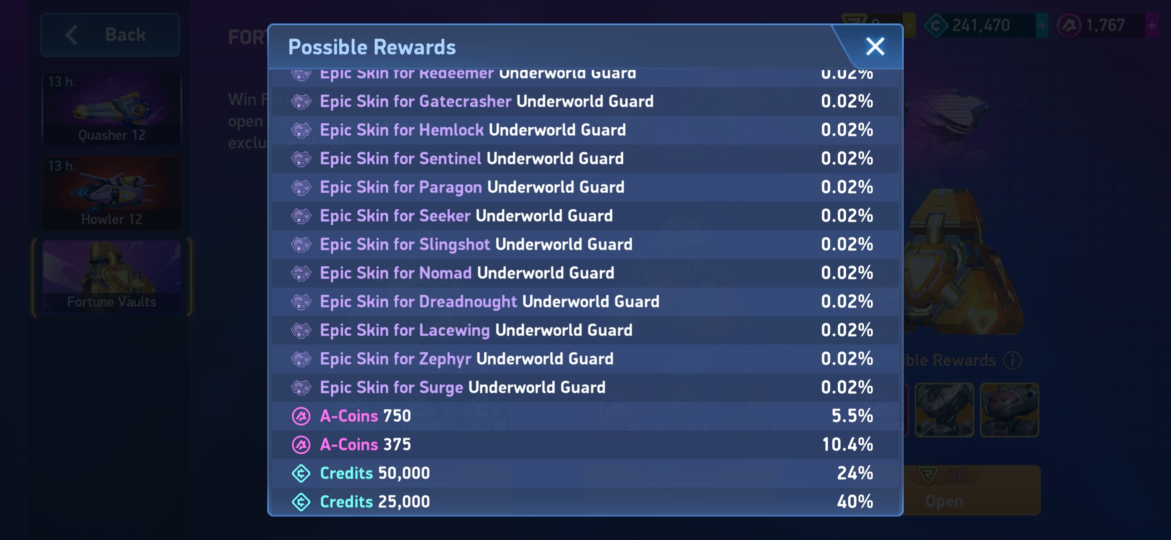 I literally spent over 100 fortune keys on FIVE KEY vaults and I got credits every single time. Not 1 skin. Yeah sure, there is "1%" chance of that happening right? And I just happen to have worst luck on earth?