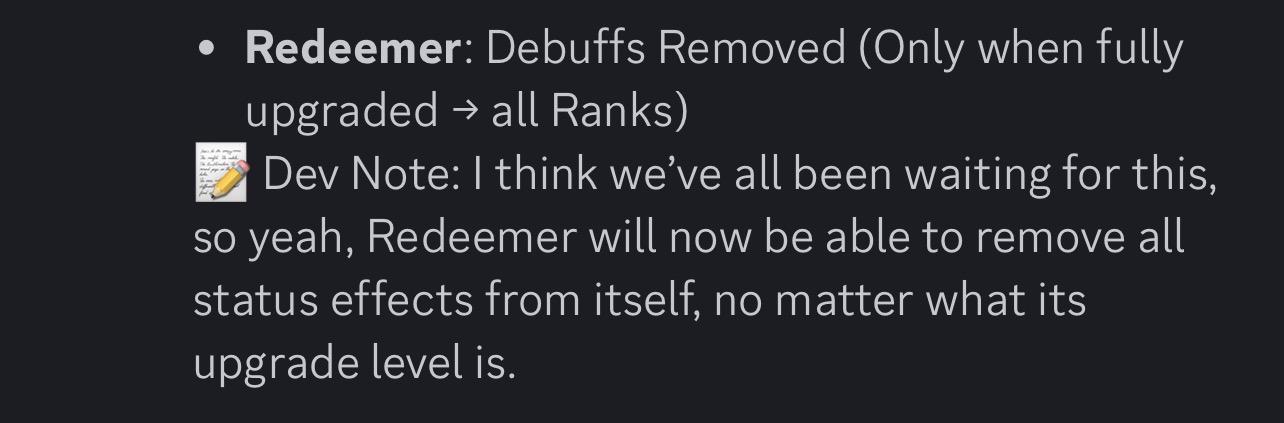 This buff has been a long time coming and well deserved. Now redeemer has a reason to unlock and use it for gear hub tiers 5 and 6.