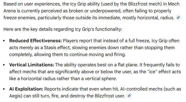 Stanley7 берез. 2026, 16:563 днi27.11.21155Blizzfrost Icy Grip broken and underpowered!!!Enemies are NOT frozen and they continue to rotate and fire. The ability has no vertical capability! When can players expect this to be fixed? i i