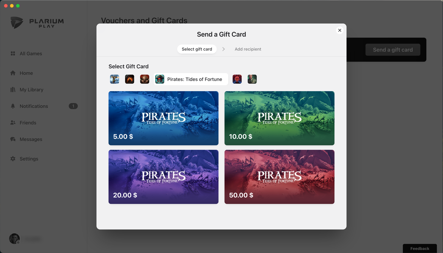 Sending a gift card to a friend to make their day takes just a few steps, with the “Vouchers & Gifts” section of the account menu in Plarium Play as your starting point.