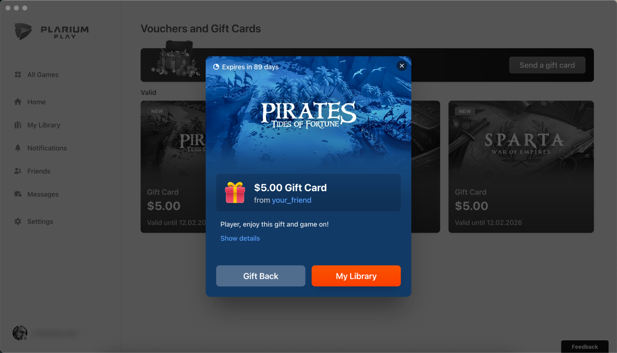 If a friend decides to make your day and send you a gift card, Plarium Play will notify you. And, since gift cards are applied automatically at checkout, you’ll never miss out on a discount.