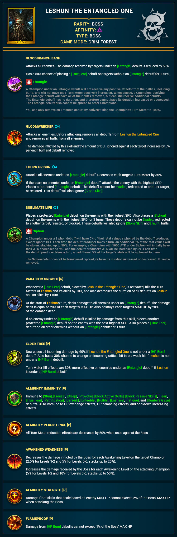 Щойно ви здобудете Три Похмурі корони, ви зможете зіткнутися з останнім босом цього ігрового режиму — Лешуном Обплетеним. Але поспішати і одразу ж вступати з ним в битву може бути нерозумно, оскільки Лешун закликає на допомогу чотирьох слуг: Сирену Ішет, Максимоза Плакальника, Тораза Кипучого та Дроґнела Збирача. Воювати з усіма 5 босами одночасно буде досить складно, але ви можете полегшити собі життя, якщо вистежите кожного служку Лешуна на карті та переможете їх окремо. Будь-який міні-бос, якого ви таким чином знищите, не з'явиться у фінальному бою.