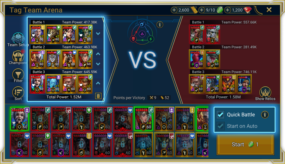 Вдосконалення ПвП режиму не закінчується лише Реліквіями - ми також додаємо Швидкі битви у Групову Арену. Щоб розблокувати ці функцію, вам потрібно бути у Сріблі 1 або вище. Після цього можна просто поставити галочку навпроти опції “Швидка битва”, щоб її активувати.