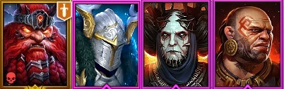 • Великий Восставший - очень сильный ПВЕ герой, но можно брать и на арену, так как он принимает часть ударов на себя, защищая слабых героев в команде. Его роль - поддержка в основном, имеет хорошие бонусы и штрафы повышающие выживание команды.