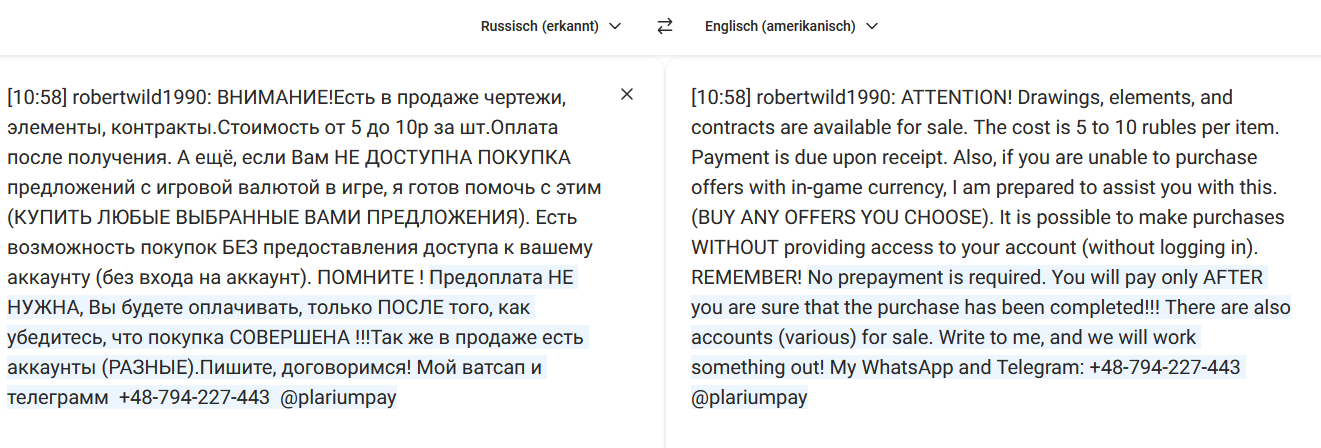 Posts like this say one thing: We are not fighting on equal terms. Hackers have an easy time offering their services everywhere in all worlds. How is it possible that these offers can be realized here in the game?